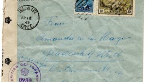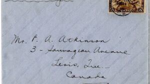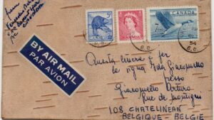 Canada 1954 bich bark envelope Air Mail from CRESCENT SPUR B.C. CDS cancel to CHATELINEAN BELGIUM. PM19540000