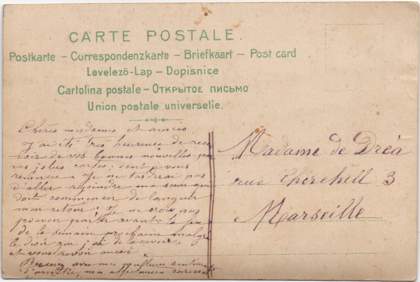Wood Post Card FRANCE to MARSEILLE June 31, 1905