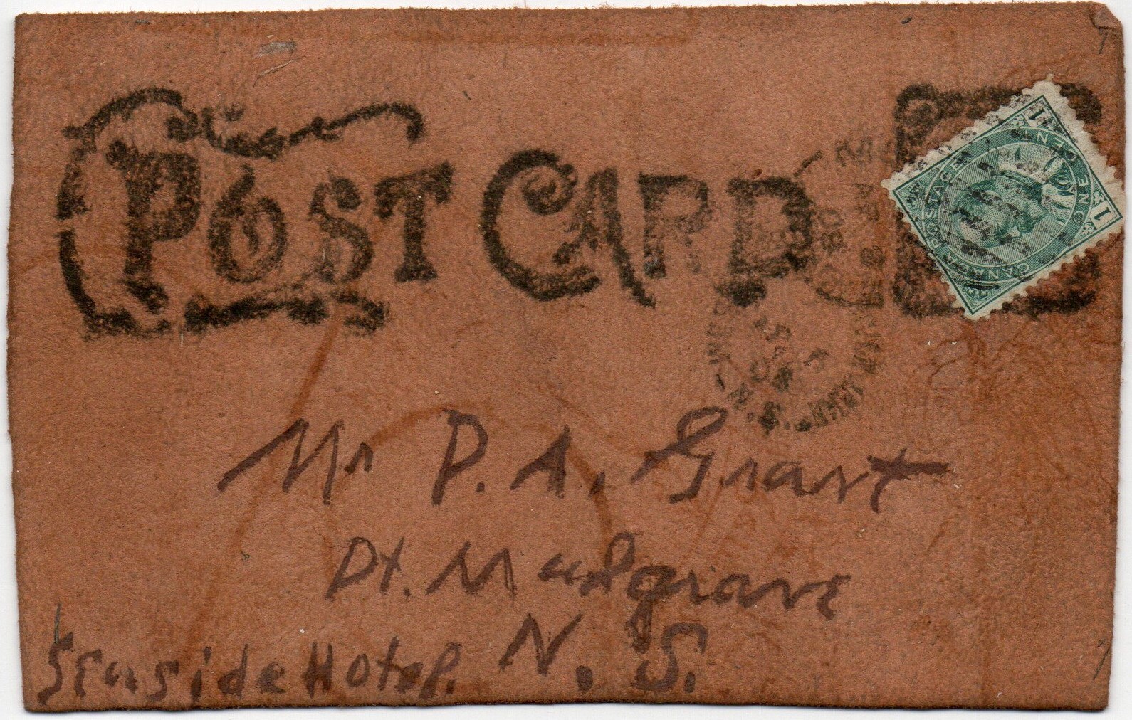 Canada 1908 Leather Post Card NOVA SCOTIA April 8, 1908 PC19080408 - Bob Bazaar