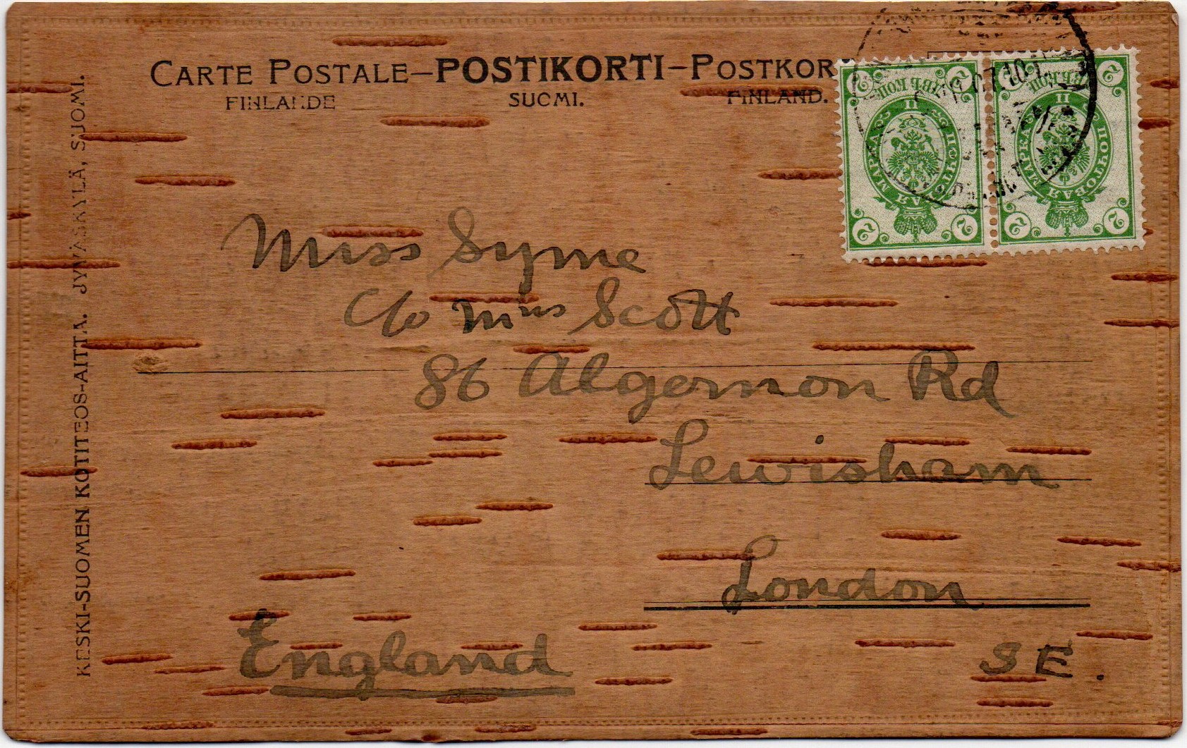 Birch Bark Post Card 1907 from SWEDEN to ENGLAND PC19070000 - Bob Bazaar