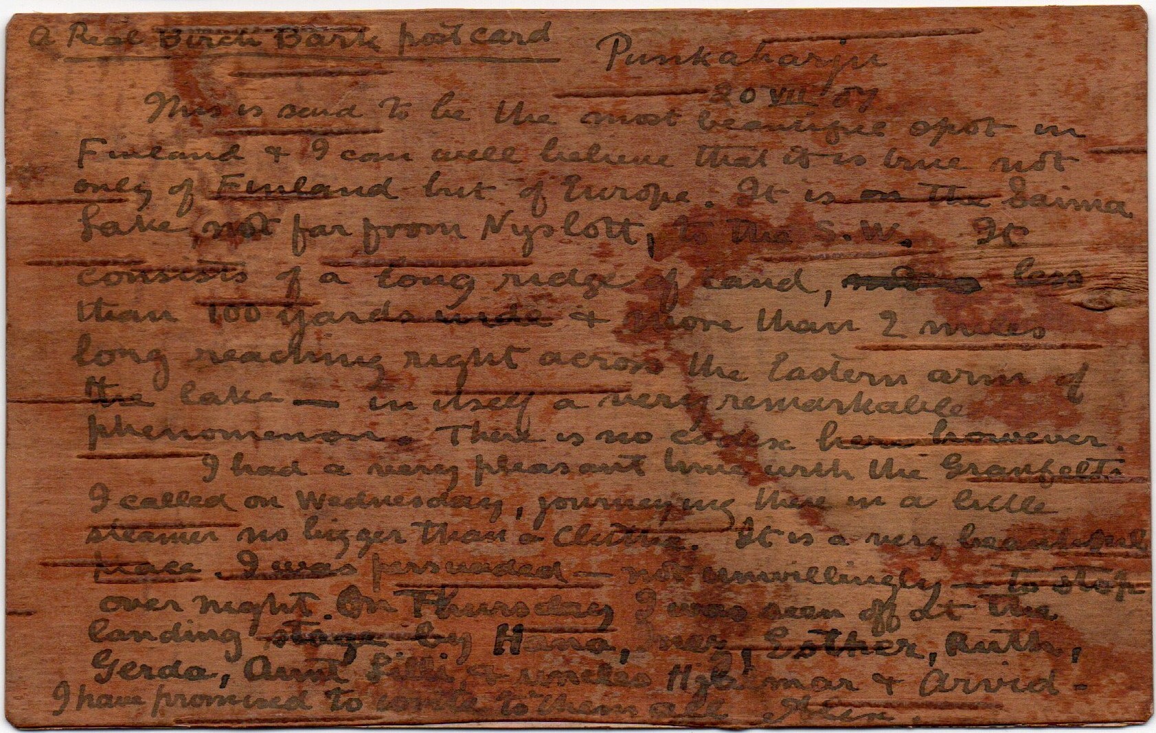 Birch Bark Post Card 1907 from SWEDEN to ENGLAND