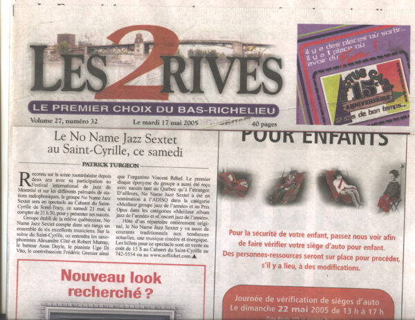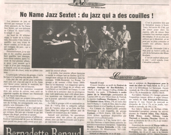 Bien connu des Montréalais, ces six jeunes musiciens ont fourni de solides prestations au Festival de jazz et après leur premier disque éponyme, la presse jazzistique et généraliste leur réserva un très bon accueil. En 2004, le travail commença à porter fruit puisque le No Name se retrouva en nomination à l’ADISQ, ainsi qu’au Prix Opus ; une réussite en soi.